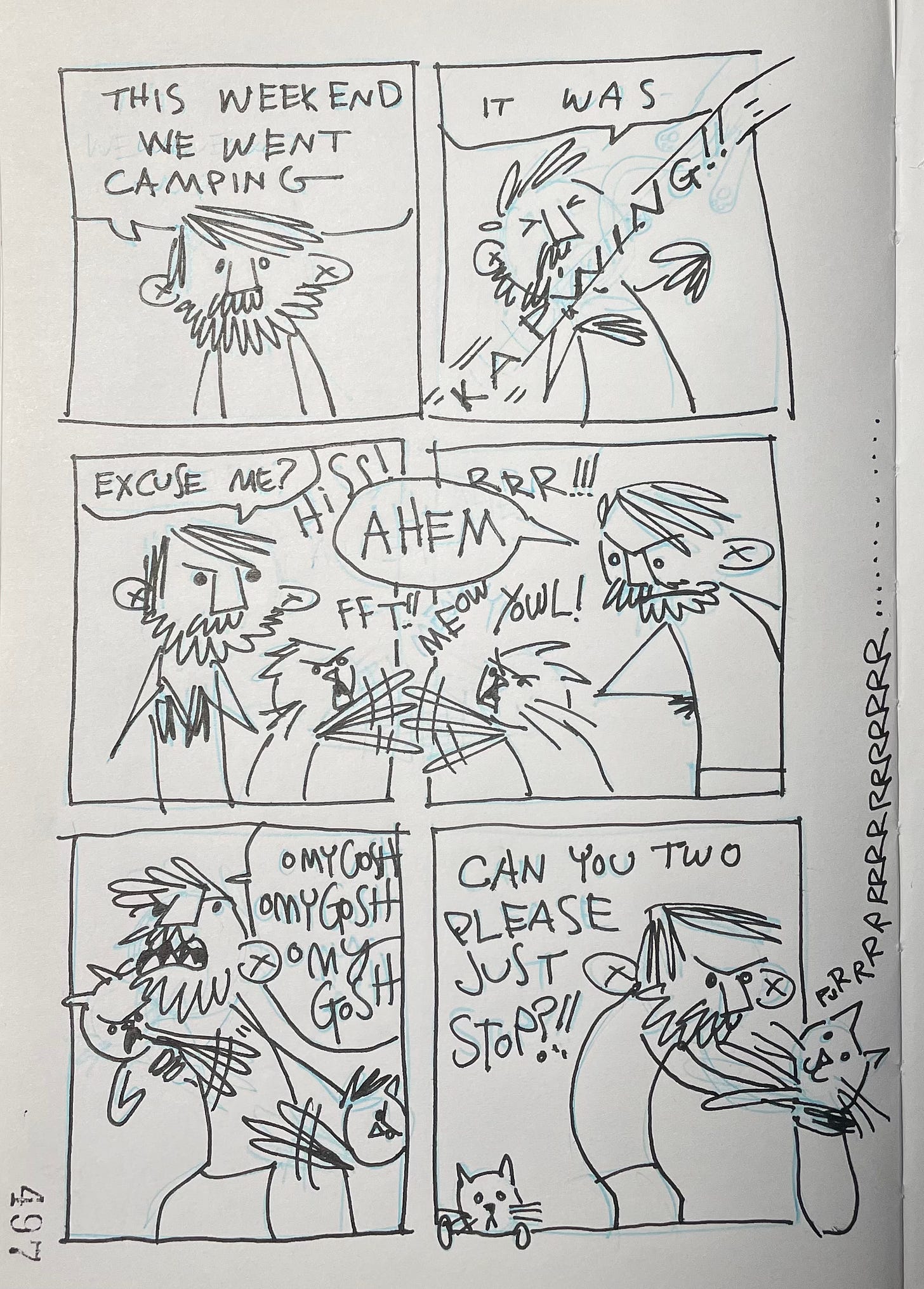 I'm glad you had fun camping! That second to last panel with the cats is really great.